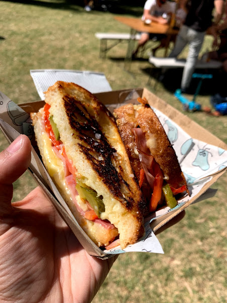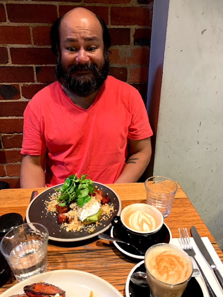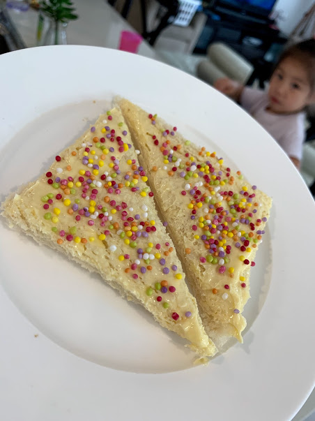 Nat was kind enough to check two large items off my Aussie to-eat list: fairy bread and pavlovas. I know it may not sound like much, but fairy bread is a simple childhood joy that many grew up with but isn’t something you buy at a restaurant. It’s basically white bread (usually no crust), butter and hundreds & thousands (spherical sprinkles). Yup, that’s it! It was simple and tasty! I guess we did something similar when I was little (as a rare treat only): sprinkling sugar (sometimes Milo too) on buttered white bread. I could only really get this from a family with young kids, so I was super excited to finally try this. (Again, it’s the simple things.)