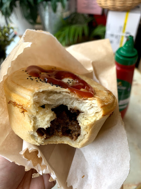 Another child-related one was a party pie! It’s really just an even smaller meat pie that are usually only at kid’s birthday parties. Since I didn’t know too many children who had close birthdays and didn’t want to get a box of 12 for myself at the grocery store, my Uncle helped me out and took me to a nice pie shop that sold them as sides (for your main pie). Again, this country has its priorities in line. I got a mince chicken party pie with my steak & mushroom meat pie. Dreams can be achieved!